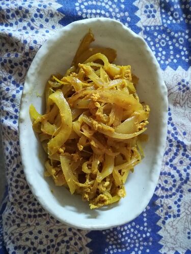 玉ねぎのポリヤル風(南インドの炒めもの)簡単なつくり方。 鎌倉生まれのグジャラーティ、バラッツさんのスパイス講座に触発され、 久しぶりにポリヤル。久しぶりにレシピ日記。 ポリヤルは、南インドの炒めもの 北インドより優しい味ね。 ●材料 玉ねぎ小3…
