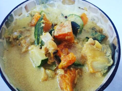 豆乳と柚子胡椒でお魚グリーンカレー…ペースト使わずかんたんに 柚子胡椒が残ってて、豆乳すきで、魚がある!!さかなバージョンで作ってみました。 ●材料 ingredients 3-4杯ぶん具材はおこのみで…(^^) -ズッキーニ 1本-かぼちゃ 1/4個-お魚の切り身(白身が…