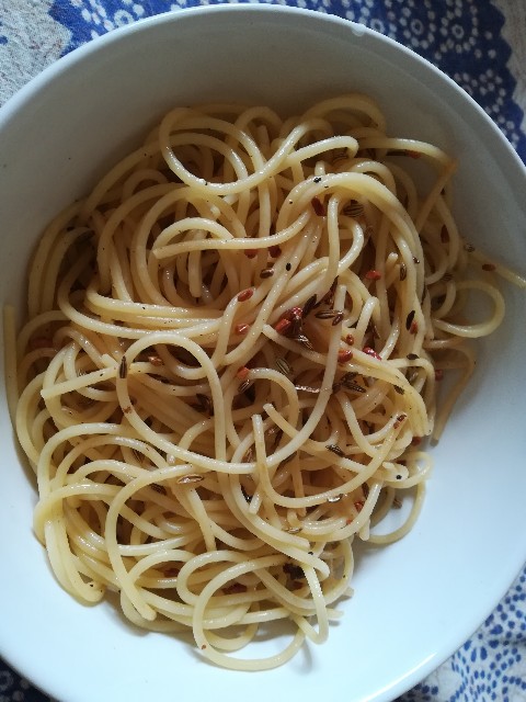 フェンネルシードとフェヌグリークのスパイス香味パスタ