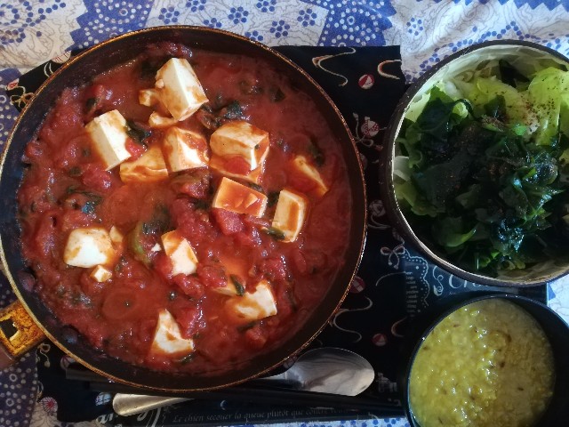 お気楽スパイス料理…トマトとほうれん草とお豆腐